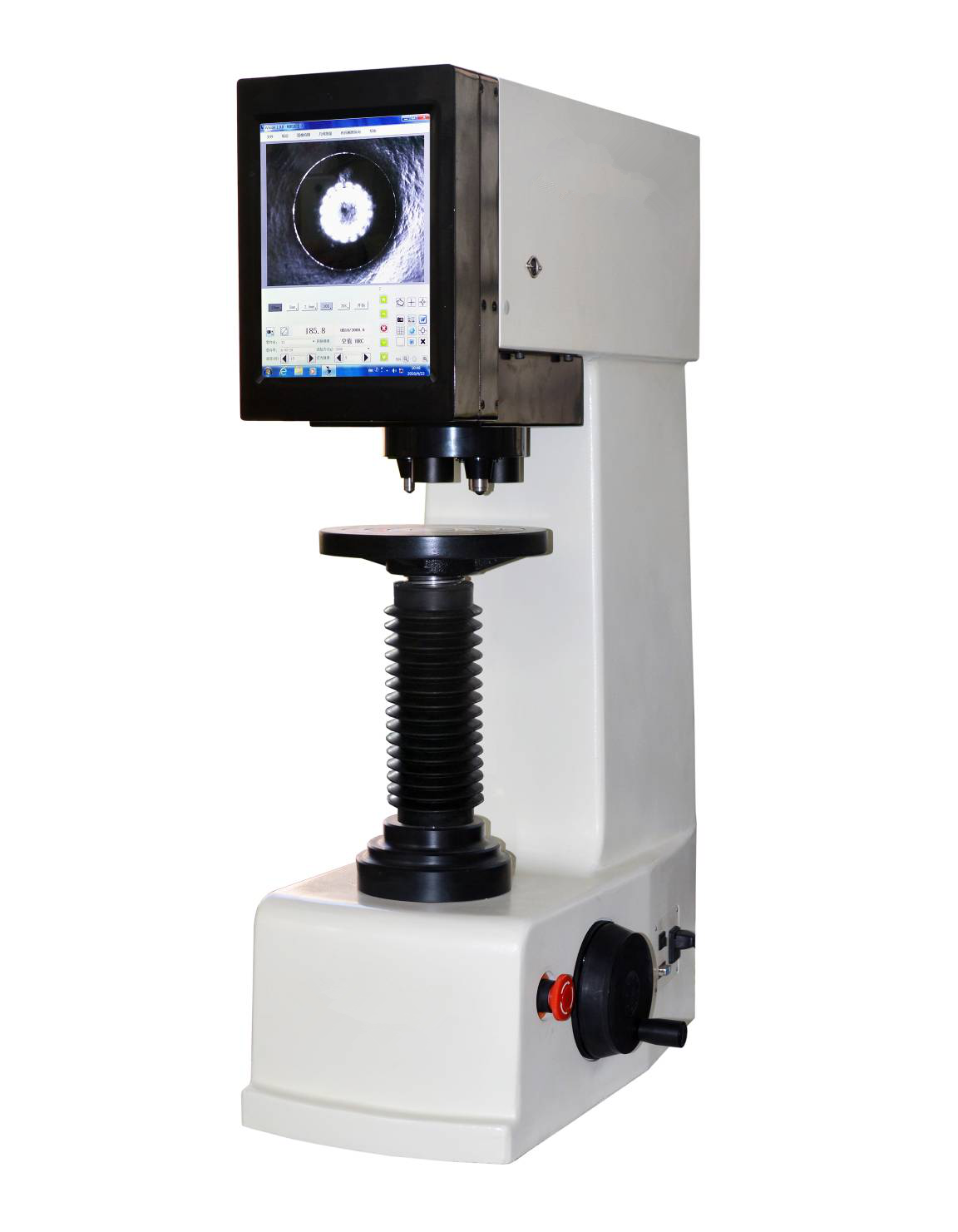 布氏硬度圖像自動測量系統一套專門用于布氏硬度壓痕測量的計算機圖像測量系統。采用了130萬像素高速USBⅡ工業攝像機,具有很高的數字圖像采集速度;采用了先進的航空數字圖像遙感自動跟蹤處理技術,能準確地分辨復雜背景中的布氏壓痕圖像;采用了計算機數字圖像軟件處理技術,設計了圖像處理算法,充分利用計算機的圖像數據云計算能力,自動態實時測量計算,能夠準確可靠地測量出布氏硬度值,使得布氏硬度的圖像測量不再受測量人員以及工件表面光潔度等因素的影響,大大地提高了測量準確度和可靠性。